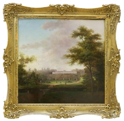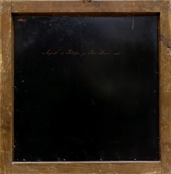 Ansicht des Schloßes zu Sans Souci (Potsdam). Öl auf Weißblech. 49 x 49 cm. Rückseitig alt bezeichnet. Gerahmt. (1098-9)