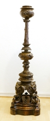 Messingbronze, teilweise Gold tauschiert mit plastischem Blüten- und Tierdekor (Elefantenköpfe und Tengu - Figuren, ambivalente Berggeister) sowie Aufsatzschale für Blumen oder Räuchermaterial versehen. Mit Holzpostament, H 147/165 cm. Dieses mit alten Wurmstichen und leichten Bereibungen. Provenienz: Aus dem Nachlass von Peter Hacks. (1100-1)