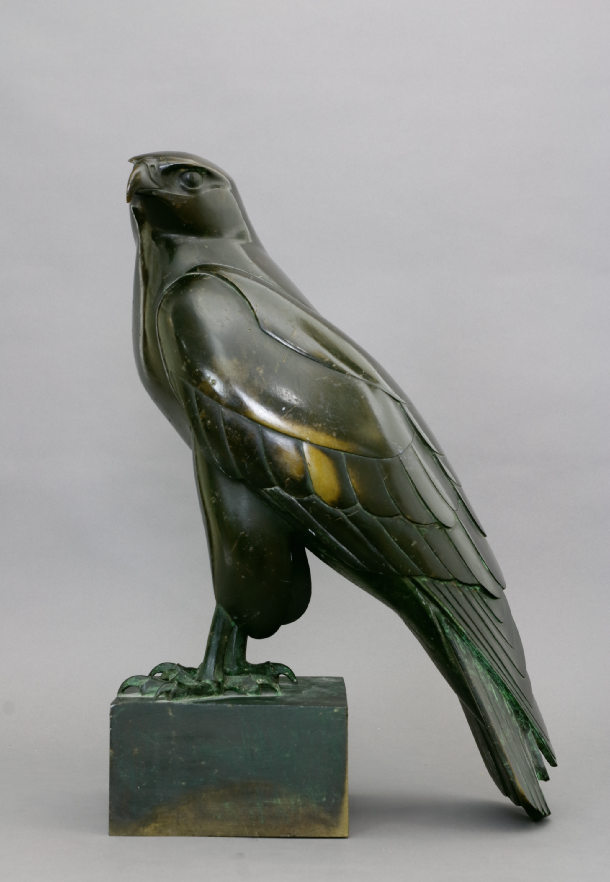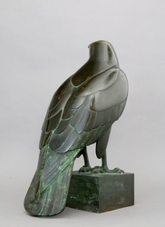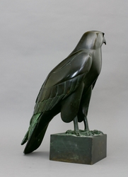 Falke. Bronzefigur mit Plinthe, dort signiert Krieger. H 45 x B 30 x T 17 cm. - W. Krieger wird von Mortimer G. Davidson in eine Reihe mit anderen bedeutenden Bildhauern und Künstlern seiner Zeit, wie Max Bernuth, Fritz Behn, Rudolf Leptien, Fritz Wrampe und Max Esser gestellt (Wiki). - Die Arbeit wird in den Nachtrag zum Werkverzeichnis von Dr. Martin Schmidt-Magin, Dreieich, aufgenommen. Wir danken für die freundliche Bestätigung der Authentizität der Arbeit. - Partiell etwas berieben, kleine Kratz- und Gebrauchsspuren.  (1102-1)