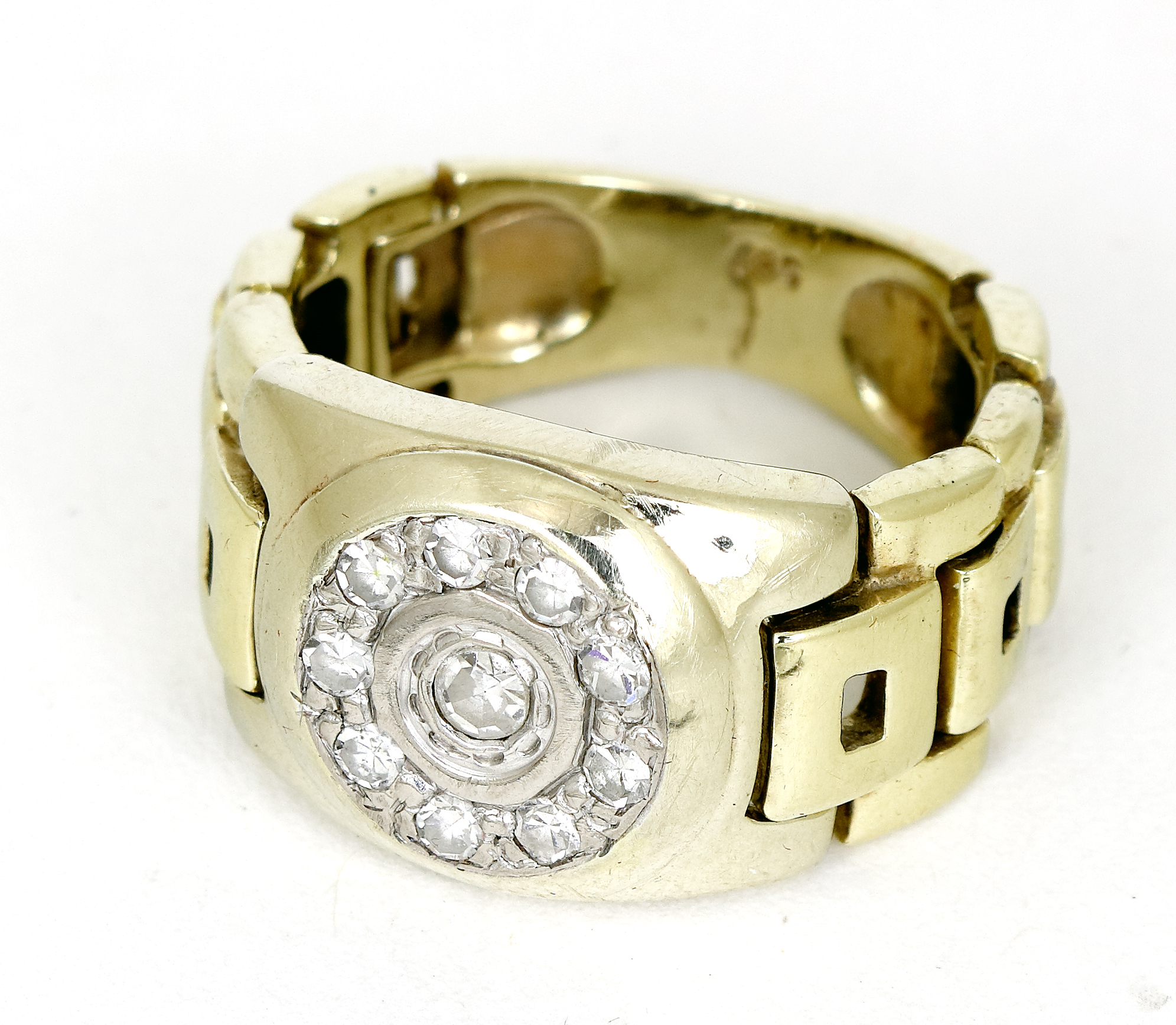 im Achtkantschliff. Ringschiene mit beweglichen Gliedern. RW 58. Gewicht ca. 9,3 g. (1106-6)