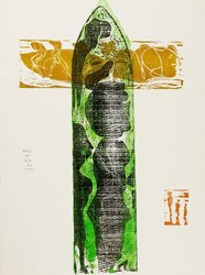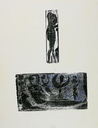Über dem Strom ein Gezweig, Blätter zu Bobrowski. Berlin, 11. Druck der Kabinettpresse, 1969. Drei Textblätter und 15 Graphiken, darunter ein Farbholzschnitt als Vortitel und zwei farbige Linolschnitte als Titelblätter. In Orig.-Leinenmappe mit je einem farbigen Holzschnitt auf dem Vorder- und dem Rückendeckel. 52,5 x 40,5 cm. Jede Graphik signiert, datiert, betitelt und nummeriert 20/70 sowie mit dem Altenbourg-Trockenstempel versehen. Im Impressum signiert und nummeriert 20. - Janda 69/10. - Inhalt: 1. Seeufer. Farblitho. 44 x 36 cm. Janda L 136. - 2. die Strophen der Nacht, die bewegten Wasser treffen den Uferrand. Litho. 26 x 37,1 cm. Janda L 131. - 3. der Schilfstrich am Strom. Litho. 44,5 x 35,5 cm. Janda L 126. - 4. Ein kaltes Brunnengewässer. Litho. 43,5 x 35 cm. Janda L 128. - 5. O tiefe Schwärze! Farblitho. 39,3 x 31 cm. Janda L 135. - 6. Nachtweg. Farblitho. 45 x 33,7 cm. Janda L 132. - 7. flüsternd, ein weißes Wasser der Töchter Gesicht. Holzschnitt. 45,7 x 20 cm. Janda H 122. - 8. in der Wölfe Spur. Farbholzschnitt. 48,7 x 27,3 cm. Janda H 123. - 9. Stromgedicht. Holzschnitt von 6 Platten. 34 x 50 cm. Janda H 124. - 10. Vogelherz, leicht, befiederter Stein auf dem Wind. Holzschnitt. 44 x 36,5 cm. Janda H 125. - 11. taucht sie in stäubenden, weichen Erlenschatten herauf. Holzschnitt. 20,2 x 43 cm. Janda H 126. - 12. Mond, vergeh. Holzschnitt. 39,6 x 28,4 cm. Janda H 127. - Sehr guter Zustand. (1112-1)