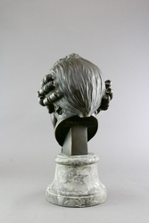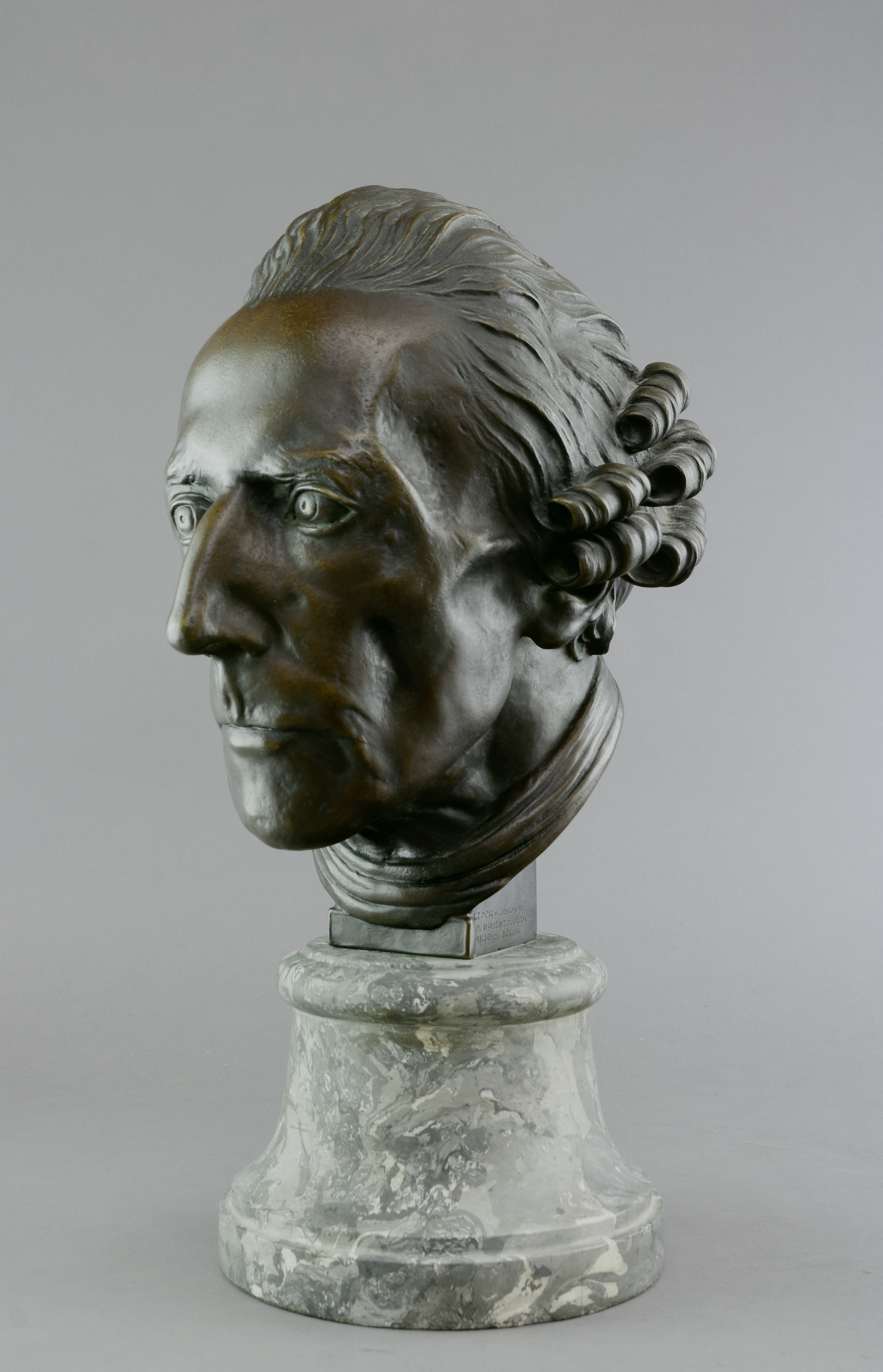 Büste Friedrich der Große, König von Preußen (1740 - 1786), 1712 - 1786. Nach dem Entwurf von 1786. Bronze auf Sockel. Rückseitig bezeichnet. H 28,5/41 cm. - Vgl. Das Bildnis Friedrich des Großen. Zeitgenössische Darstellungen. Berlin u. Leipzig, Nibelungen-Verlag, 1940, S. 128 f.  (1114-1)