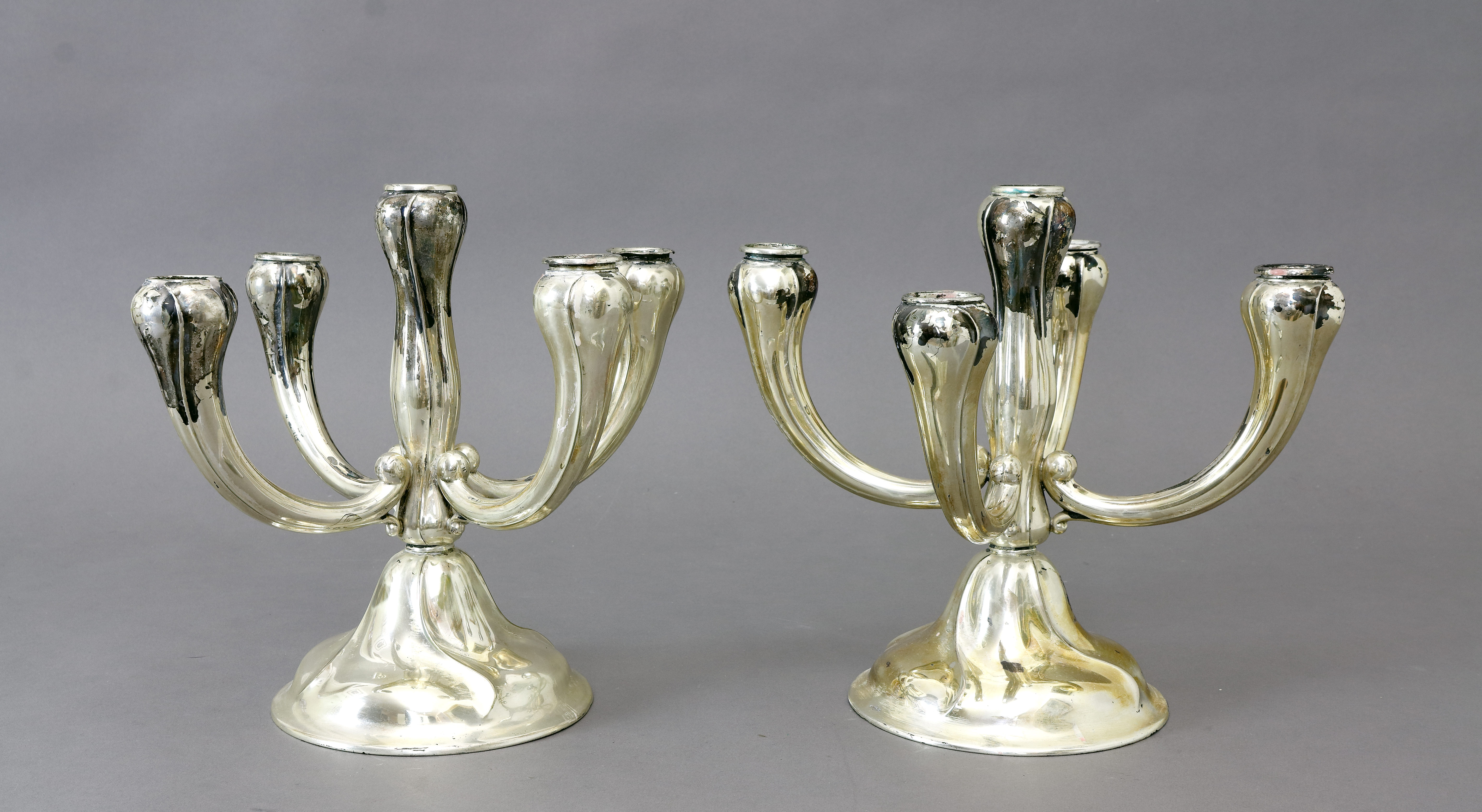 Kerzenleuchter, fünfarmig, 800er Silber, Deutsch, 1. Hälfte 20. Jh., ein Paar