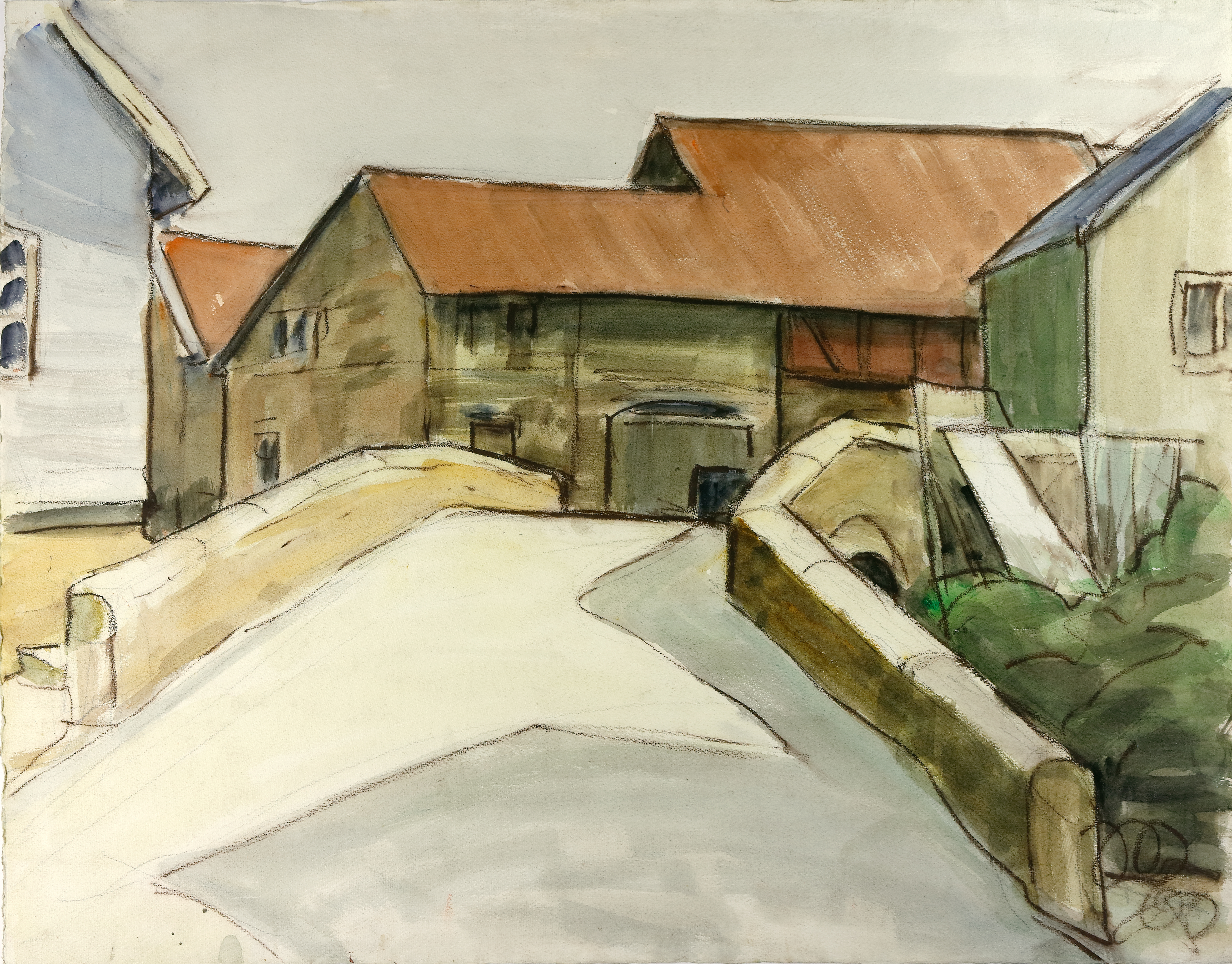Walhausen im Hunsrück. 14. Aug. 1960. Aquarell auf Karton. 54 x 69 cm. Rechts unten monogrammiert und datiert sowie rückseitig datiert und bezeichnet. (1137-2)