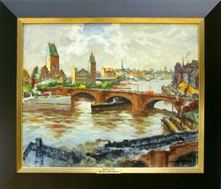 Berlin: Die Waisenbrücke. Um 1920. Öl auf Leinwand. 50 x 60 cm. Rechts unten signiert. Auf dem Keilrahmen betitelt. Gerahmt. -Die Waisenbrücke verband die südlich der Spree gelegene Wallstraße mit der nördlich der Spree gelegenen heutigen Littenstraße, vormals Neue Friedrichstraße. (990-1)