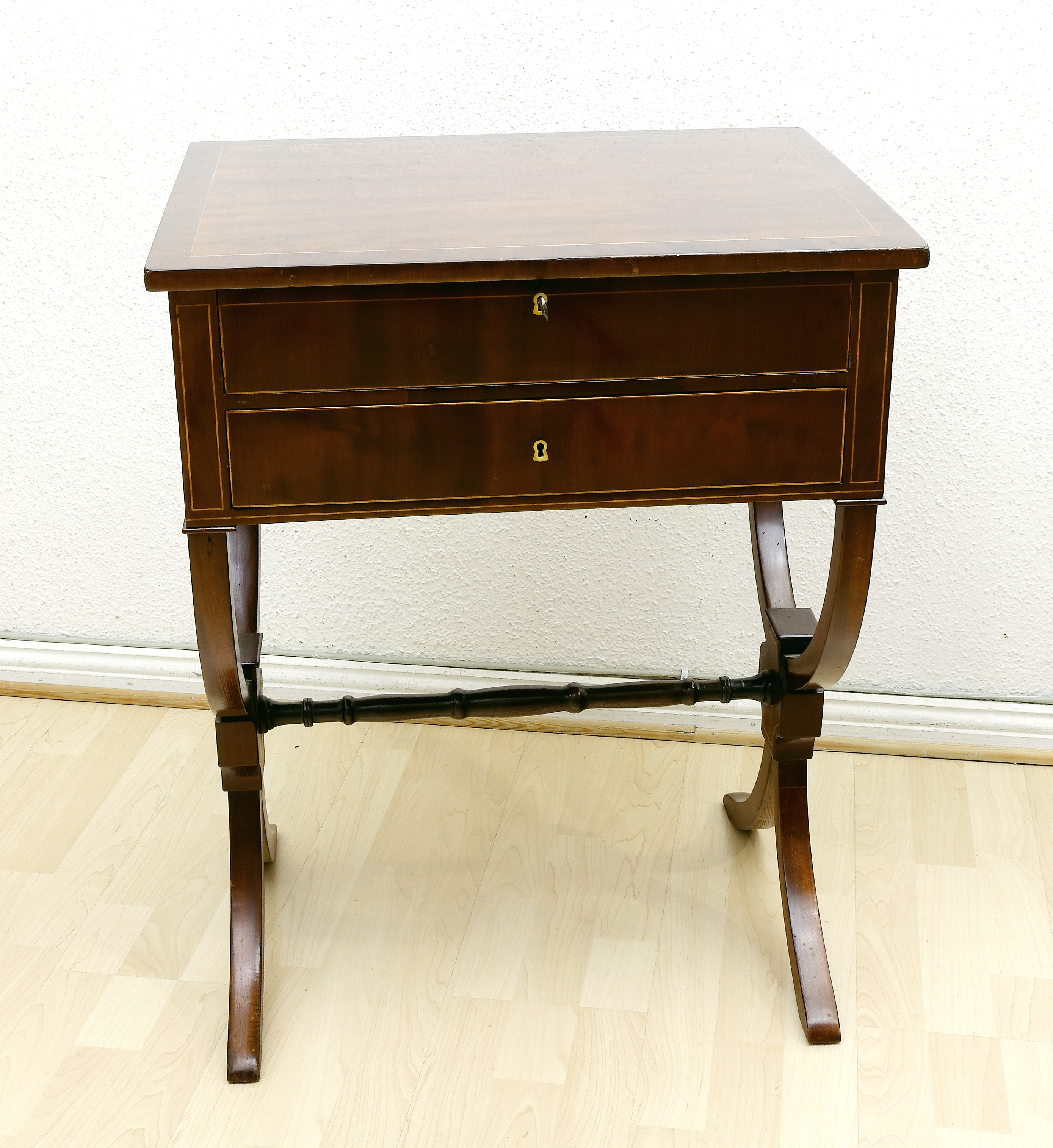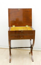 Nähtisch, Mahagoni, mit heller Fadeneinlage, um 1820
