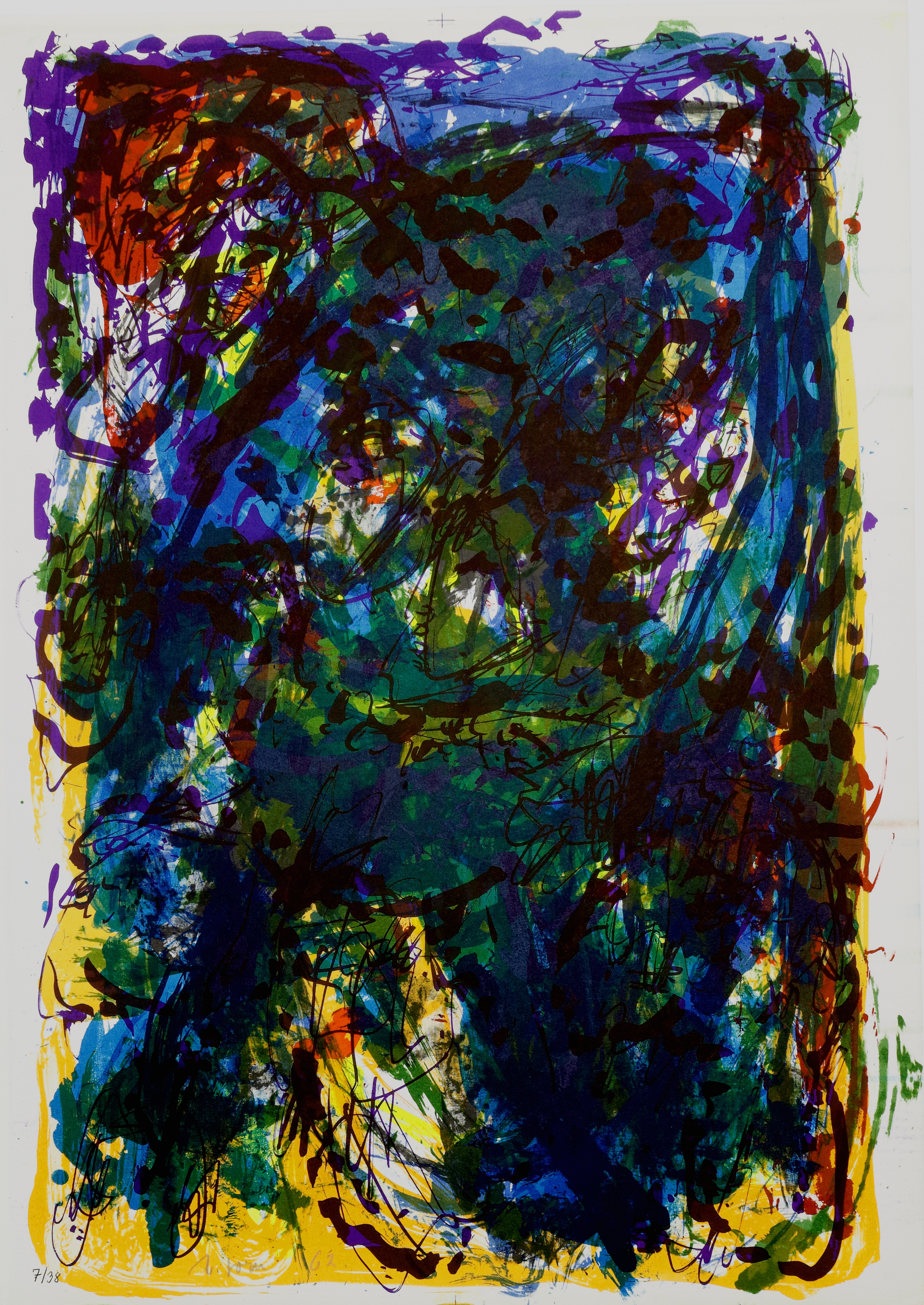 Komposition. (1962). Farblithographie auf Velin. Bg. 61,8 x 44,3 cm. Signiert, datiert und nummeriert. Exemplar 7/38. -van de Loo 236. (992-1)