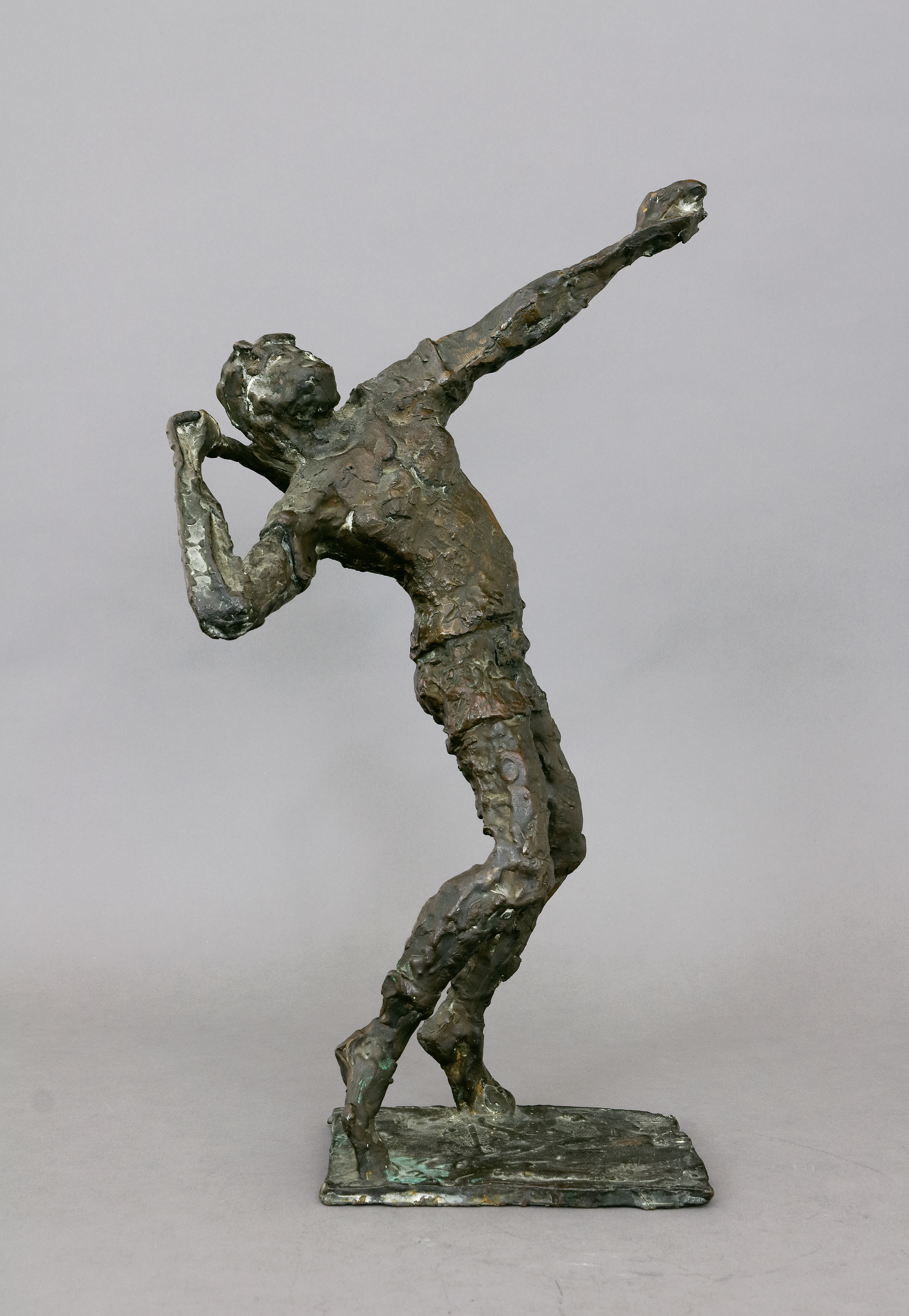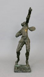 Tennisspieler. Um 1978. Bronzefigur, braune Patina, mit Plinthe, dort signiert. H 47,3 cm.  (992-14)