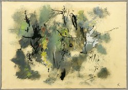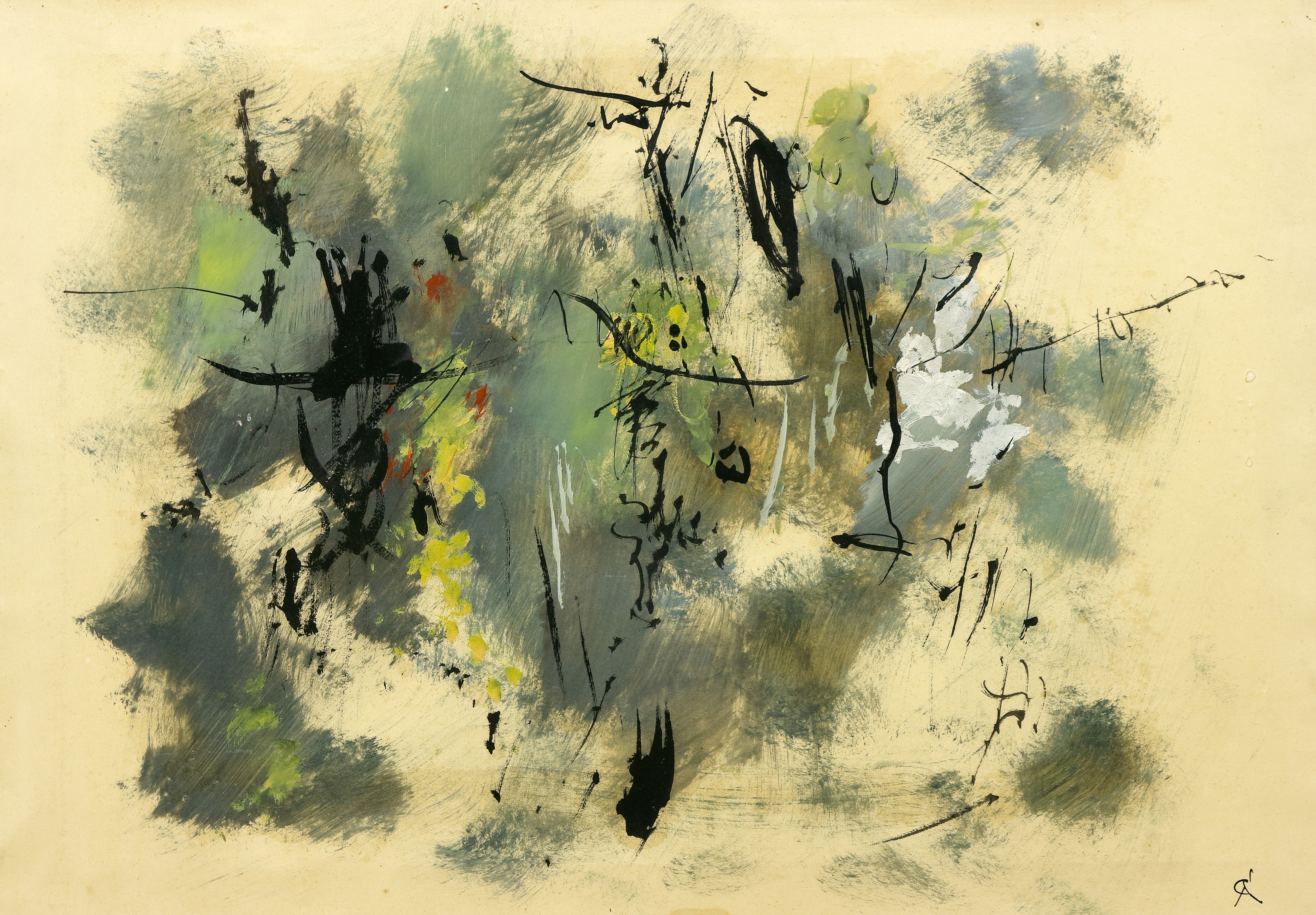 Ohne Titel. 1958. Öl auf Papier auf Leinwand. 35 x 50 cn. Rechts unten monogrammiert sowie rückseitig datiert. In Künstlerleiste gerahmt. (992-17)
