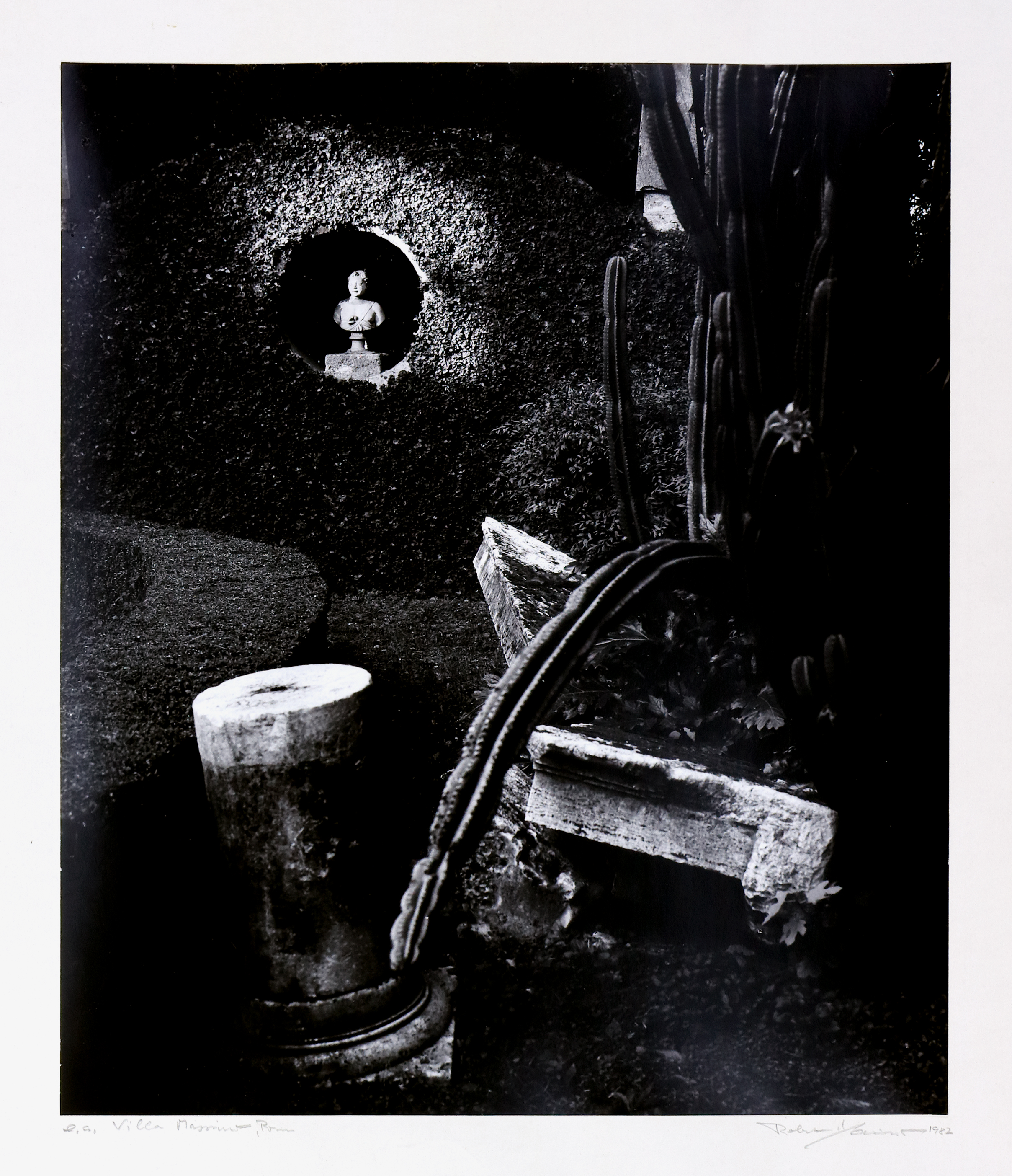 Villa Massimo, Rom. 1982. Zwei Fotographien, Vintage, Silbergelantineabzüge, auf Fotokarton kaschiert. 35 x 29,8 cm und 27,5 x 39,5 cm. Jeweils signiert, datiert, betitelt und bezeichnet "e.a." sowie rückseitig mit Fotografenstempel und signiert. -Häusser gilt als Wegbereiter der zeitgenössischen Fotografie. (992-20)