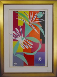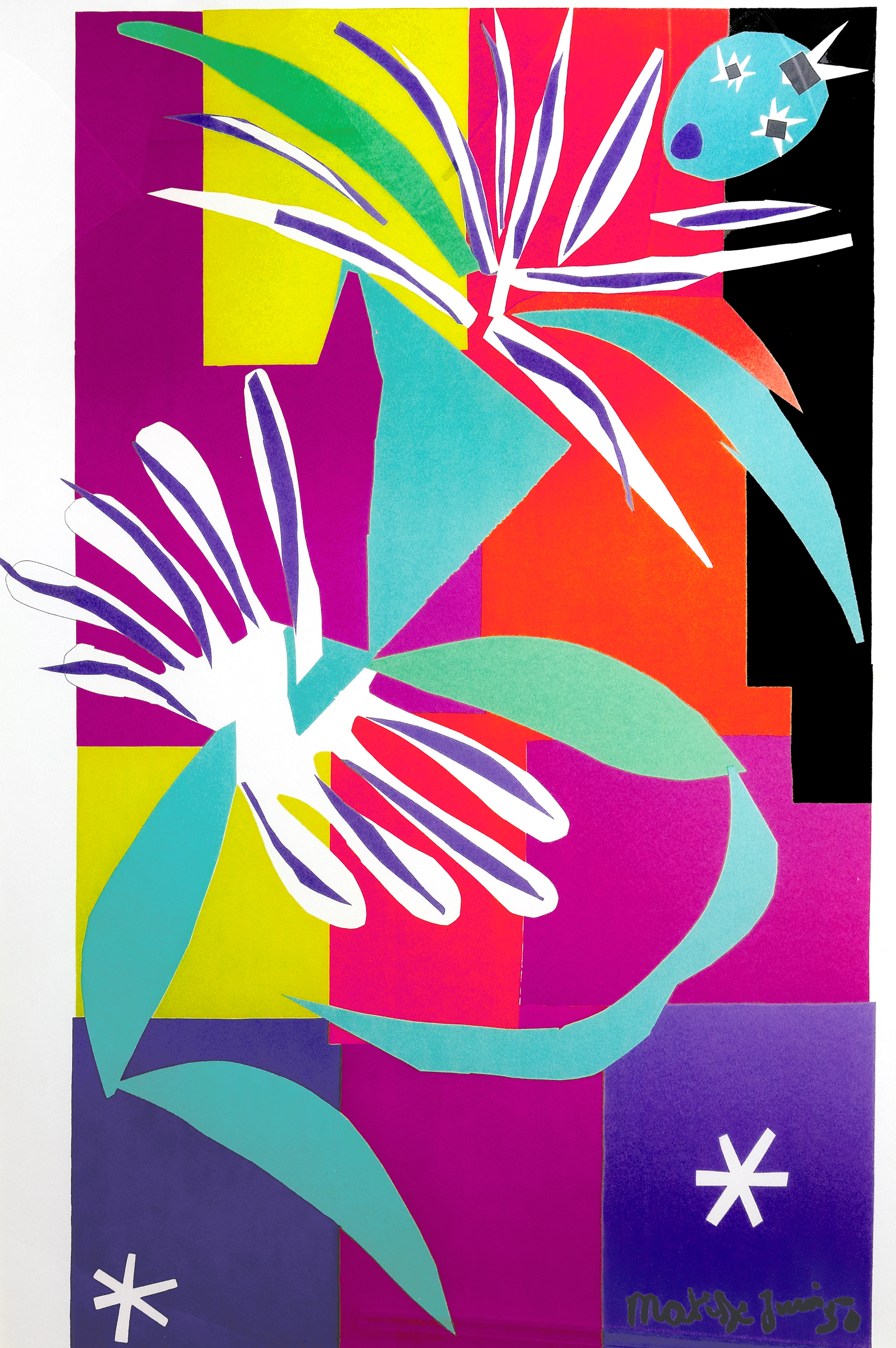 La Danseuse Créole. Farblithographie nach einer Gouache auf Papier Découpé. Gedruckt bei Mourlot, Paris, 1965. 62 x 98 cm. Im Passepartout, unter Glas gerahmt, 115 x 86 cm. (993-53)