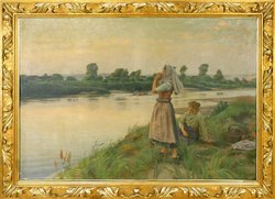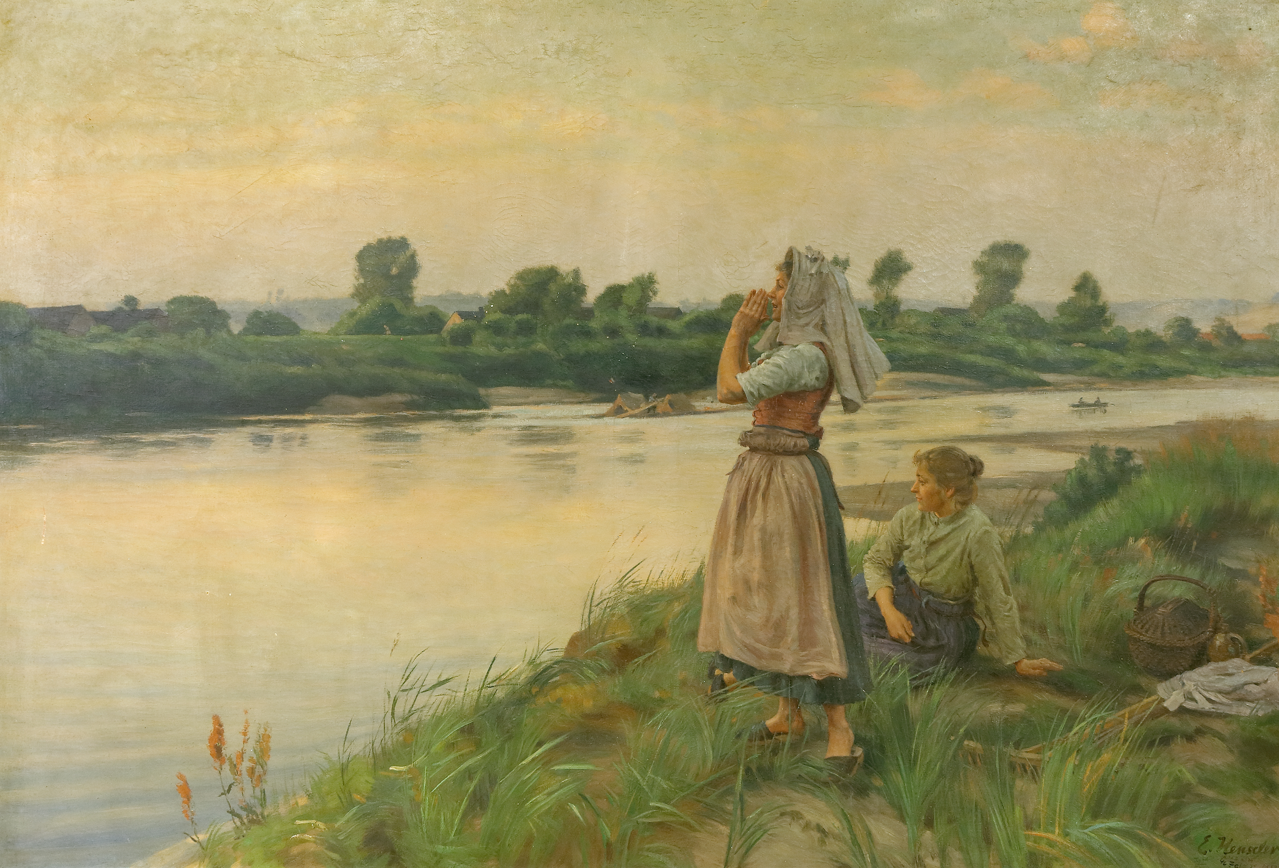 Holt über. Um 1902. Öl auf Leinwand. 101 x 150 cm. In vergoldetem Rahmen der Zeit, 121 x 170 cm. Rechts unten signiert. Rückseitig mit altem Klebeetikett der Großen Berliner Kunstausstellung 1902, N° 2229. -Lit.: Gerhard Boese, Ernst Henseler 1852 -1940. Ein Maler aus dem Warthebruch, 2000, N° 272. -Ungereinigt, kleine Farbverluste, Rahmen minimal beschädigt. (995-1)