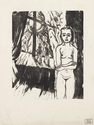 Weiblicher Akt, am Fenster stehend. Holzschnitt auf Japanbütten. 24 x ...
