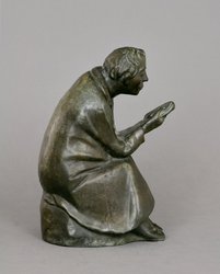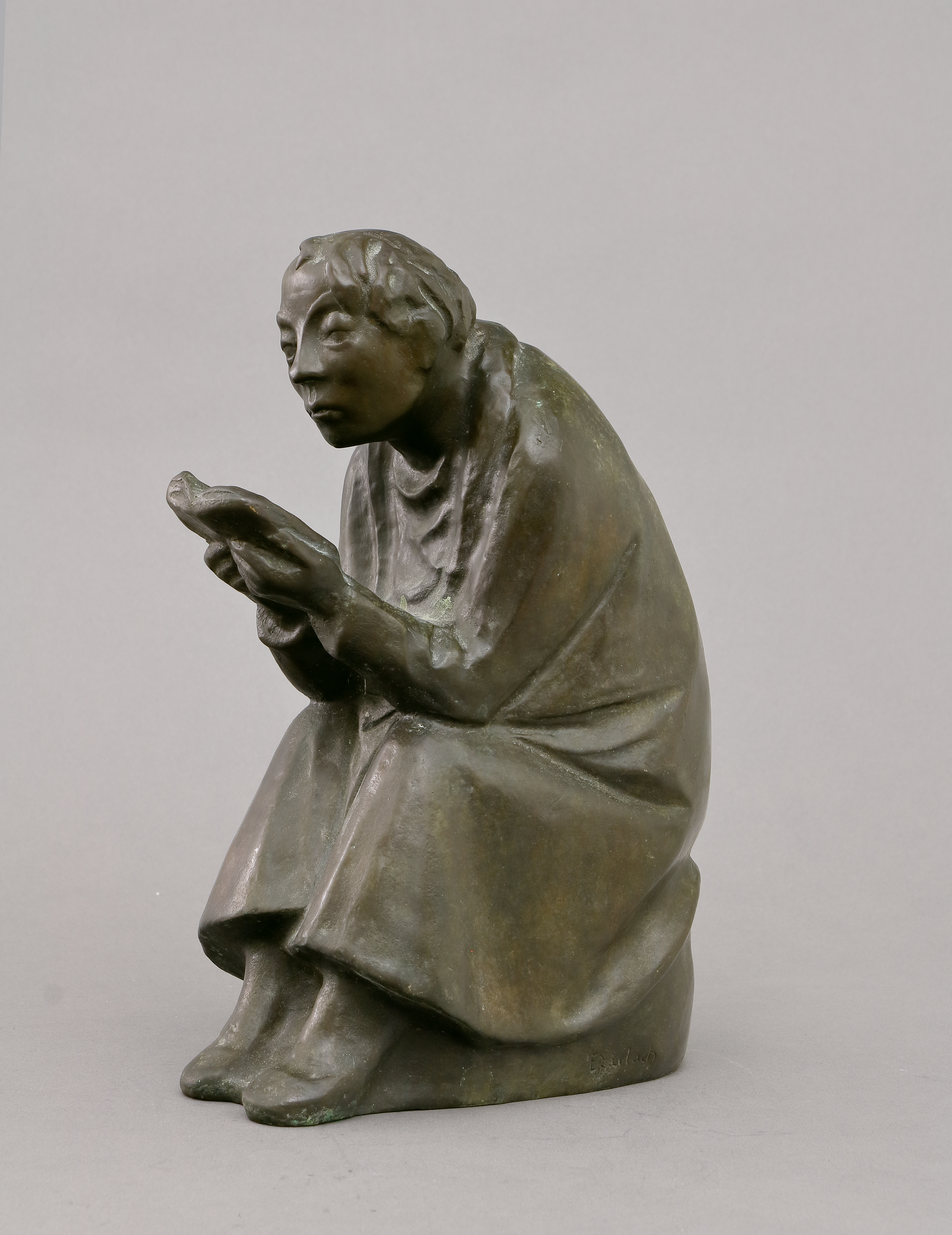 Der Buchleser. (1936). Reduktion in Bronze, mit brauner Patina. Am unteren Rand bezeichnet und im Boden nummeriert. Exemplar 251/980 ars mundi. Gießer-Stempel. H 24 x B 17,5 x T 11 cm. -ars mundi Exklusiv-Edition, herausgegeben in Zusammenarbeit mit der Ernst Barlach Gesellschaft. (1000-2)