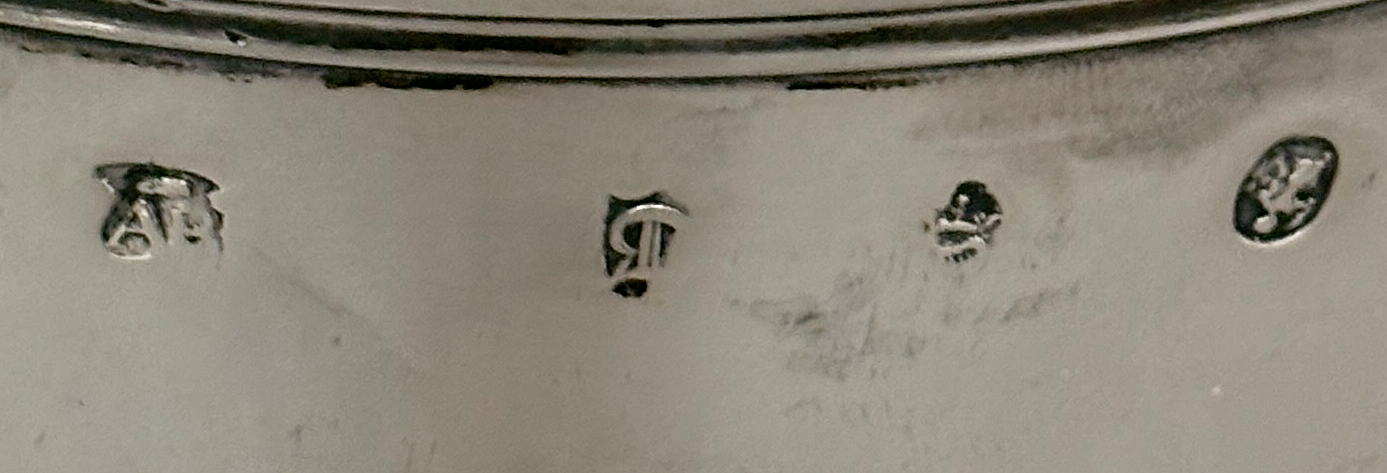 Konische Balusterform mit getrepptem Deckel mit Knauf und ziseliertem Panther oder Hund. Rechts und links stilisierte, florale Handhaben. Abgesetzter, getreppter runder Stand. Auf der Wandung eingraviertes Wappen der Familie KNATCHBULL. H 31 cm. Gewicht ca. 1396 g. Punzen: Bekrönte Harfe mit Hibernia Punze und datiertem Buchstaben sowie Meistermarke AB für Alexander Brown. -Vgl. Jackson, S. 611; Für das Wappen mit Expertise von der Deutschen Heraldischen Gesellschaft e.V. 1965. (1036-1)