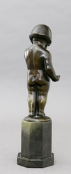 Knabe mit Schmetterling. Bronzefigur mit Plinthe, dort bezeichnet, auf oktogonalem Marmorsockel. H 22,5/23 cm. (1007-17)