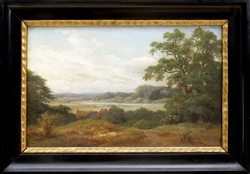 Weite Landschaft. Öl auf Malkarton. 18 x 27 cm. Rechts unten signiert sowie rückseitig alt bezeichnet. Gerahmt. (1013-1)