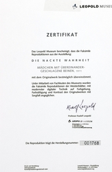 Mädchen mit übereinander geschlagenen Beinen. (1911). Faksimile Reproduktion, Herstellungsnummer 001768. 52 x 35,2 cm. Im Druck monogrammiert und datiert. Mit Zertifikat vom Leopold Museum, Wien, beigegeben.  (1033-3)