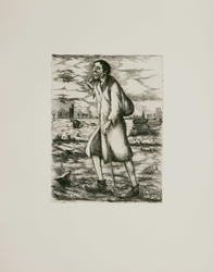 De profundis clamavi ad te, Domine. Zyklus von 16 Radierungen 1947 - 1952. 16. Rad. mit Aquatinta auf Kupferdruckkarton. Berlin, Edition Schwarz auf Weiss, 1982. Groß-Folio. OLwd.-Kassette. Im Impressum signiert und nummeriert 55 (GA 75 Ex.). - vgl. Saure/Weström 85. - Komplette Folge der Graphik-Edition in tadelloser Erhaltung. - Rotermund, Meisterschülerin von Emil Orlik, widmet sich mit diesem Mappenwerk dem Berlin der Nachkriegszeit und dem Elend der Flüchtlinge. 1952 erhielt sie dafür den Kunstpreis der Stadt Berlin. (1052-3)