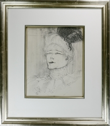 Die Schauspielerin Jeanne Granier. 1898. Lithographie in Schwarz auf aufgewalztem Vélin. 29,3 x 24 cm. Halblinks unten im Stein monogrammiert. - Delteil 154; Adhemar 178; Adriani 264; Wittrock 250. - Eines von 20 Exemplaren auf diesem Papier (GA 40). - Provenienz: Sammlung eines Mitgliedes der Künstlervereinigung Les Vingt. - Im Passepartout, unter Glas gerahmt. (1066-48)
