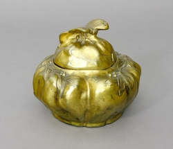 Dose. Art Nouveau. Um 1905. Bronze und Ormolu. H 13 cm, D ca. 15,5 cm. Auf der Wandung signiert A. Vibert. (1071-7)