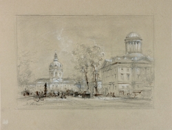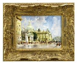Berlin, Unter den Linden, mit Zeughaus und Neuer Wache. Öl auf Holz. 18 x 24 cm. Links unten signiert. Gerahmt. - Eine weitere Berlinansicht des Künstlers, Bleistift, weiß gehöht, 17 x 25,5 cm, beigegeben. (1081-5)