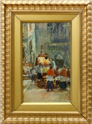 Messe im Dom zu Florenz. 1925. Öl auf Holz. 25,5 x 16 cm. Links unten signiert, rückseitig alt bezeichnet. Gerahmt. (1098-28)