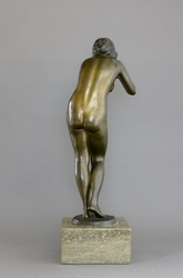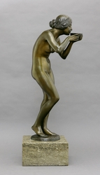 Trinkende. Bronzefigur mit Plinthe auf Marmorsockel. H.: 62/73 cm. Gewicht 29 kg. Signiert Victor H. Seifert.  (1120-1)