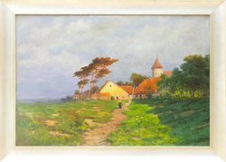 Dorflandschaft auf Rügen. Um 1890. Öl auf Leinwand. 69 x 100 cm. Links unten signiert, rückseitig betitelt. Gerahmt. - Provenienz: Aus einer New Yorker Privatsammlung.  (934-27)