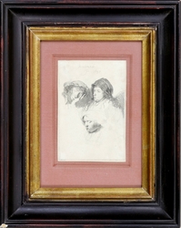Drei Frauenköpfe, die eine schlafend (1637). Radierung auf Bütten. 14,2 x 9,4 cm. - Seidlitz 368; New Holstein 161 III (III). - Abzug des 19. Jh. - Freiliegend im Passepartout, unter Glas gerahmt.  (993-4)