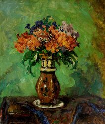 Blumen in einer Vase. 2. 3. (19)84. Öl auf Leinwand. 46 x 38 cm. Rechts ...