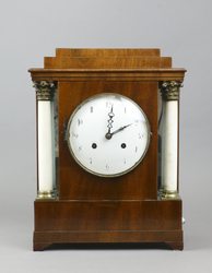 Rund, tief gemuldet. Fahne mit umlaufender blauer Mäander-Doppelbordüre s...